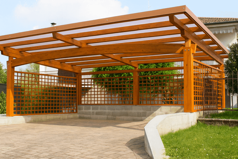 Проект "КРБ - 3442" - хороший одноэтажная дом для постоянного проживания с комнатой отдыха, с террасой. Площадь гаража 47.00 м2 с размерами 6 на 6.