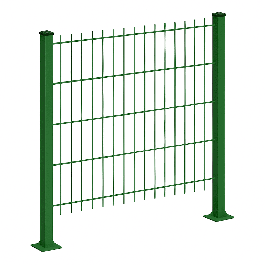 Крепление пролётов. К опорам монтируются секции — профнастил, сварные панели или сетка. Используются сварные соединения или болтовые крепления, в зависимости от проекта.